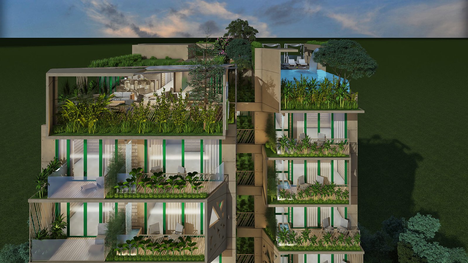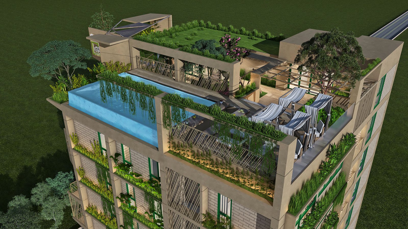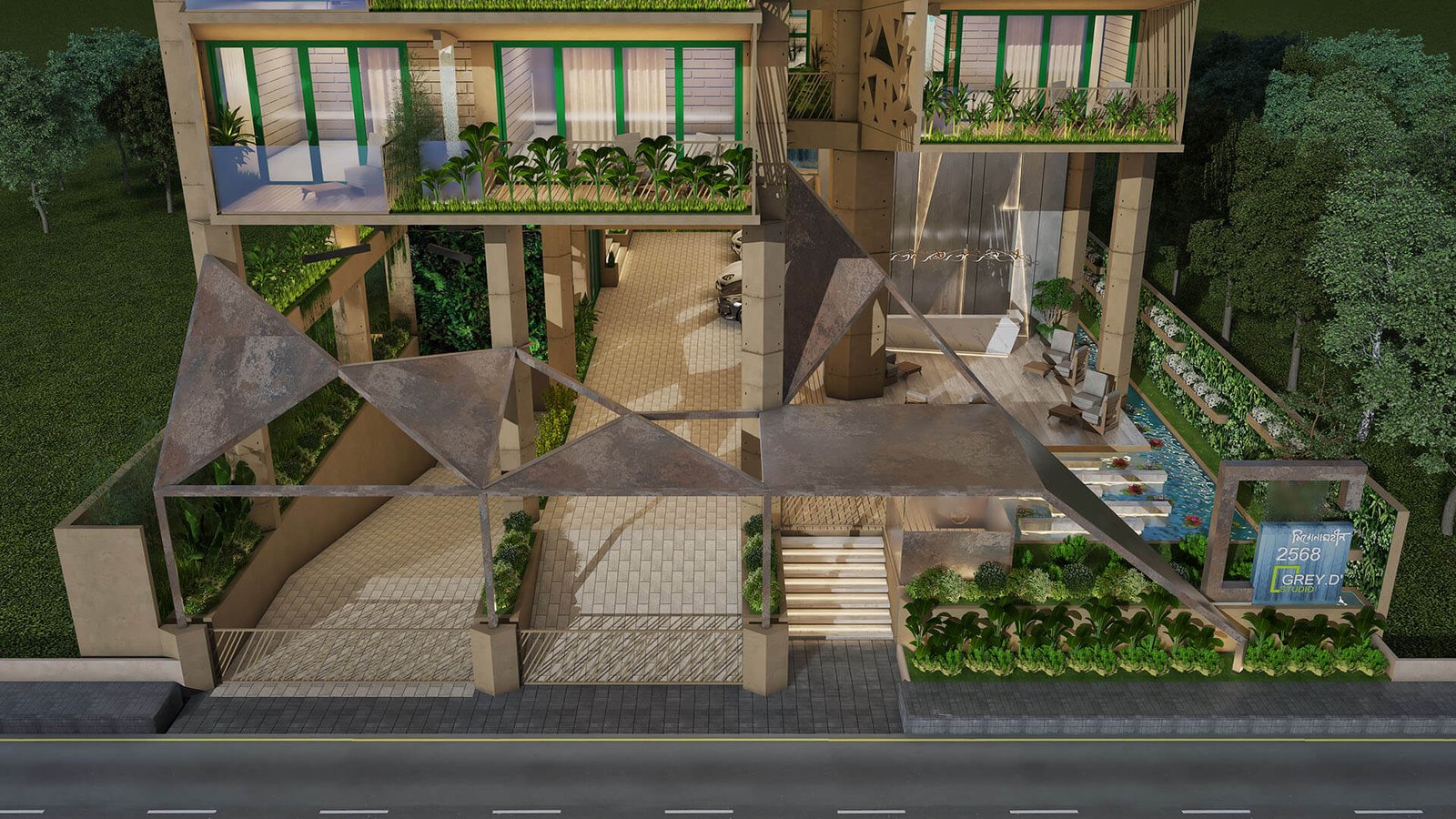 The building has been thoughtfully designed to maximize the benefits associated with cool summer daylight and winter sunlight from all sides with cross-ventilation. There are also naturally inaccessible green garden areas. Bedrooms are located away from guest bedrooms and main entertainment areas to emphasize privacy.