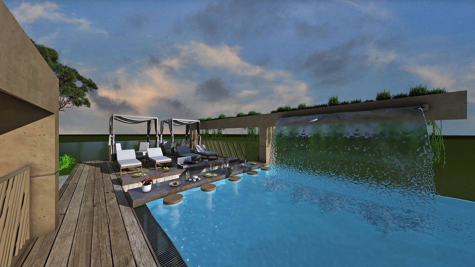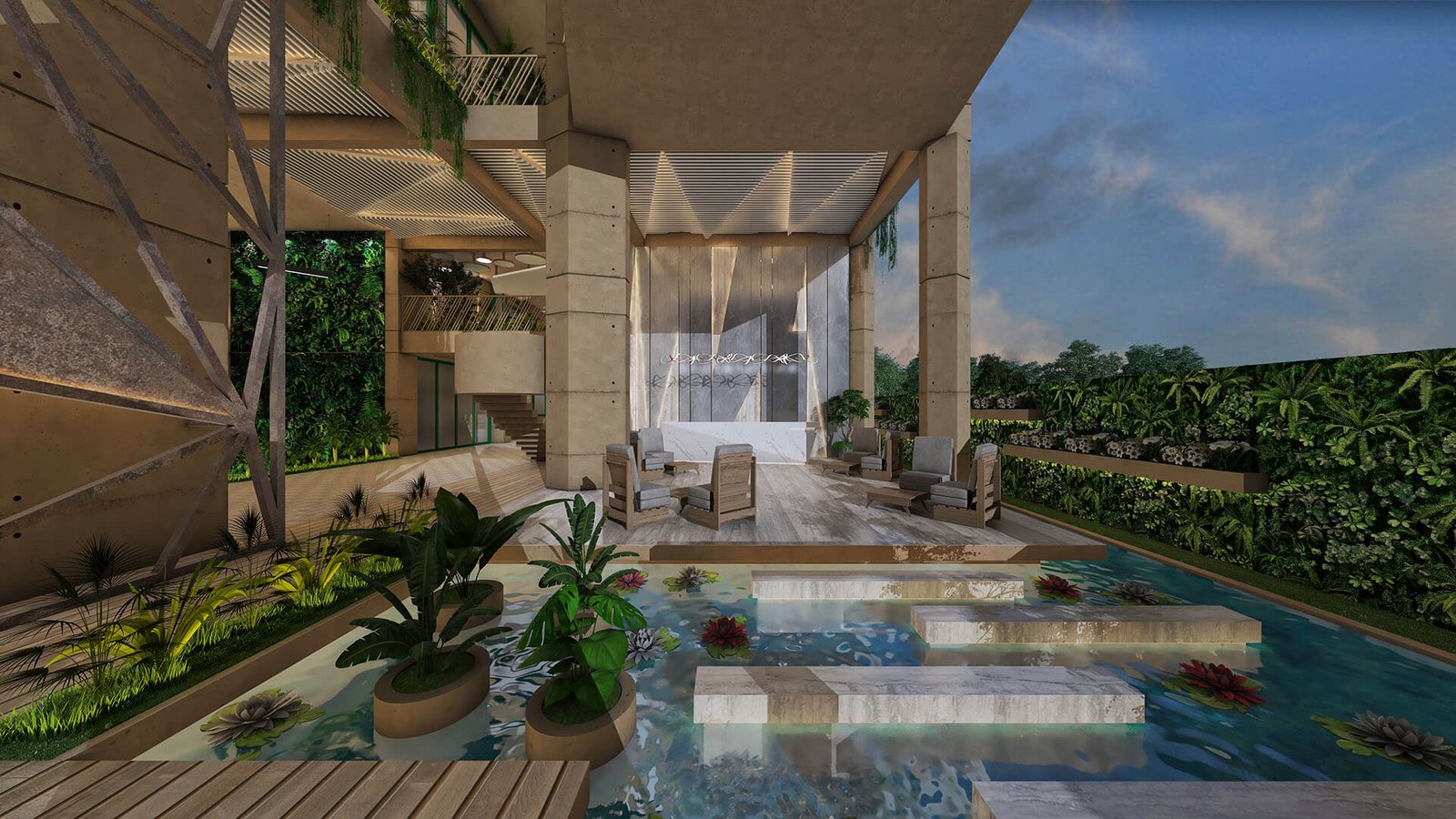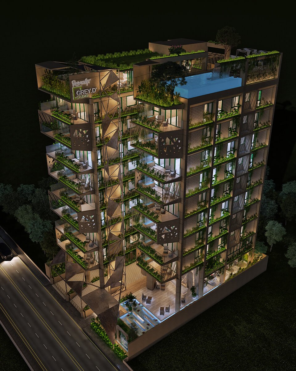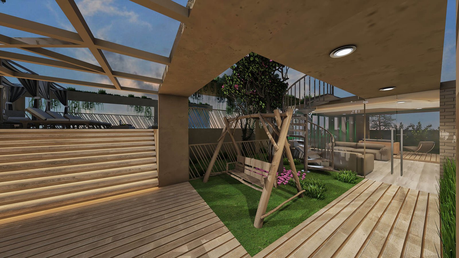 The building has been thoughtfully designed to maximize the benefits associated with cool summer daylight and winter sunlight from all sides with cross-ventilation. There are also naturally inaccessible green garden areas. Bedrooms are located away from guest bedrooms and main entertainment areas to emphasize privacy.